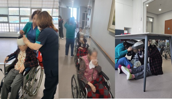 지진이나, 화재와 같은 재난상황에 신속히 대응하여 어르신의 생명과 재산을 지키고자 하반기 재난상황 훈련을 횡성소방서와 합동으로 진행하였습니다.